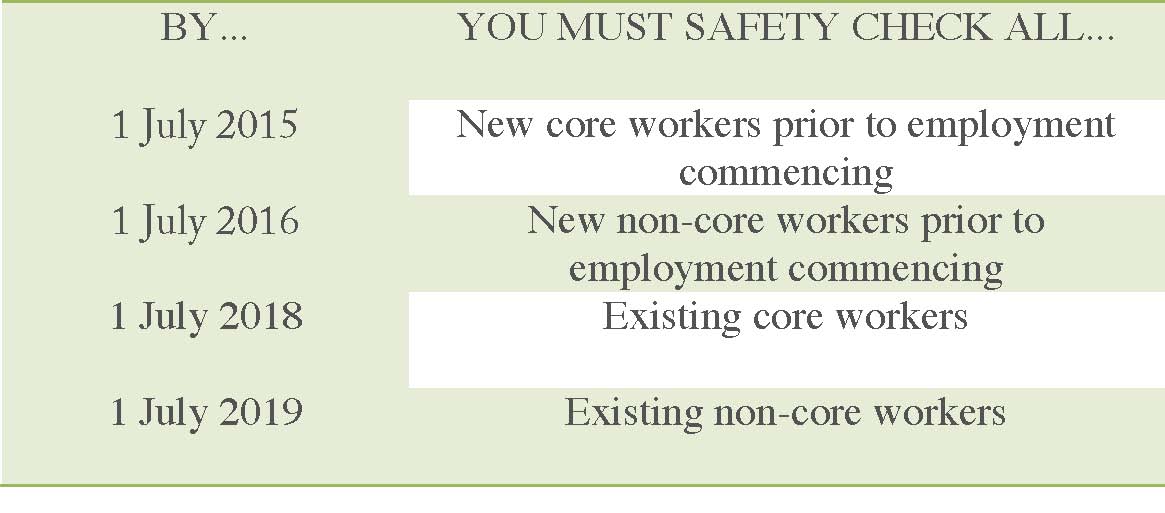 New Regulations under the Act set out the minimum standards for safety checking. Click HERE to download two forms that can guide you through the safety checking requirements. The first time around, you need to use the full safety check form. Thereafter, you can use the periodic safety checking form.